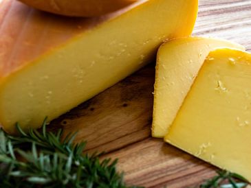 A semi-hard gouda-style, cellared for over 5 months with a smear rind.